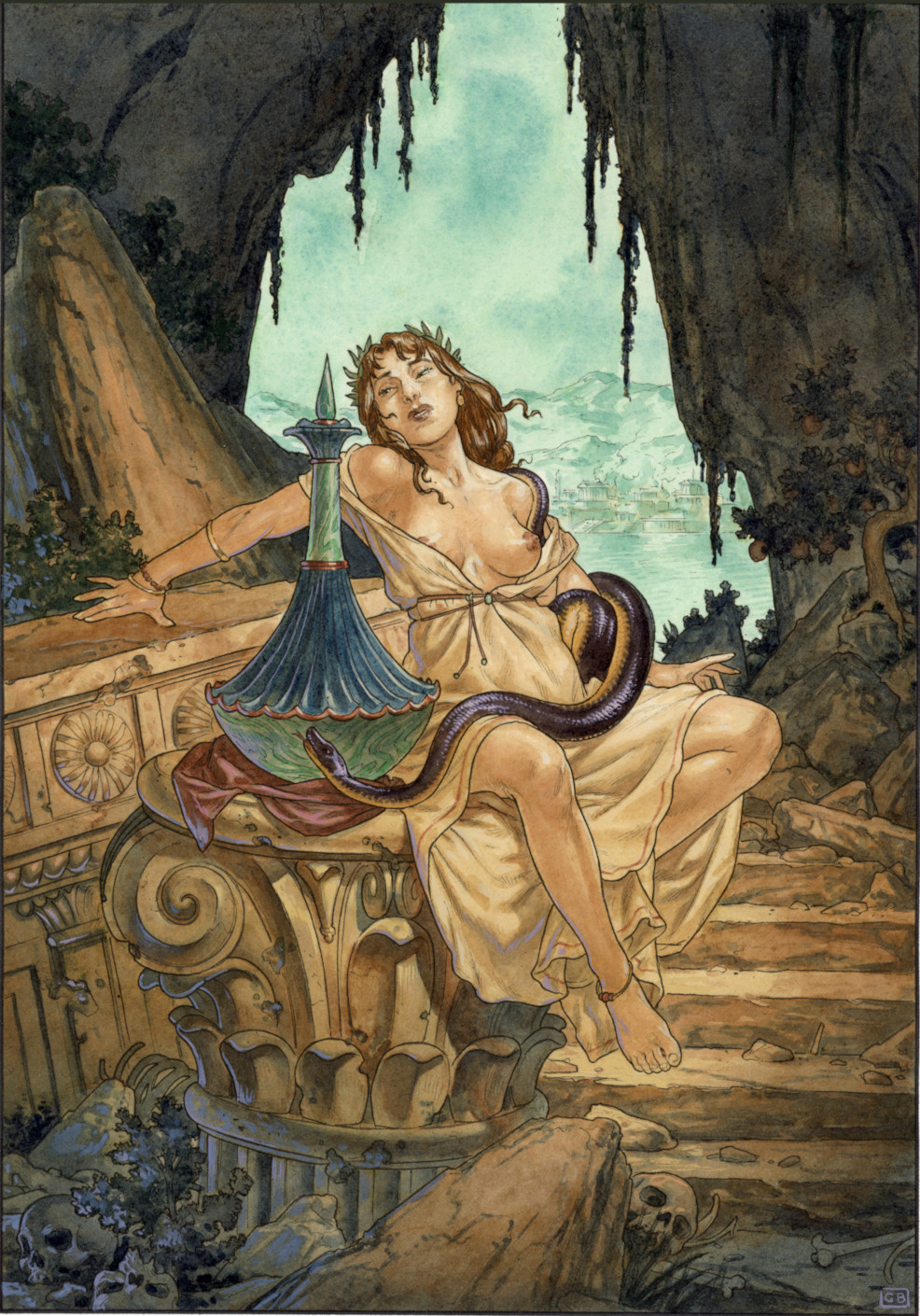 Un mot de l’artiste : « C’était un vrai plaisir de travailler avec le concepteur de ce site sur ce projet ambitieux. Au-delà du simple plaisir de dessiner et peindre des personnages et scènes de la mythologie grecque que j’adore, j’ai particulièrement apprécié découvrir de nouveaux mythes et des détails fidèles souvent méconnus. »